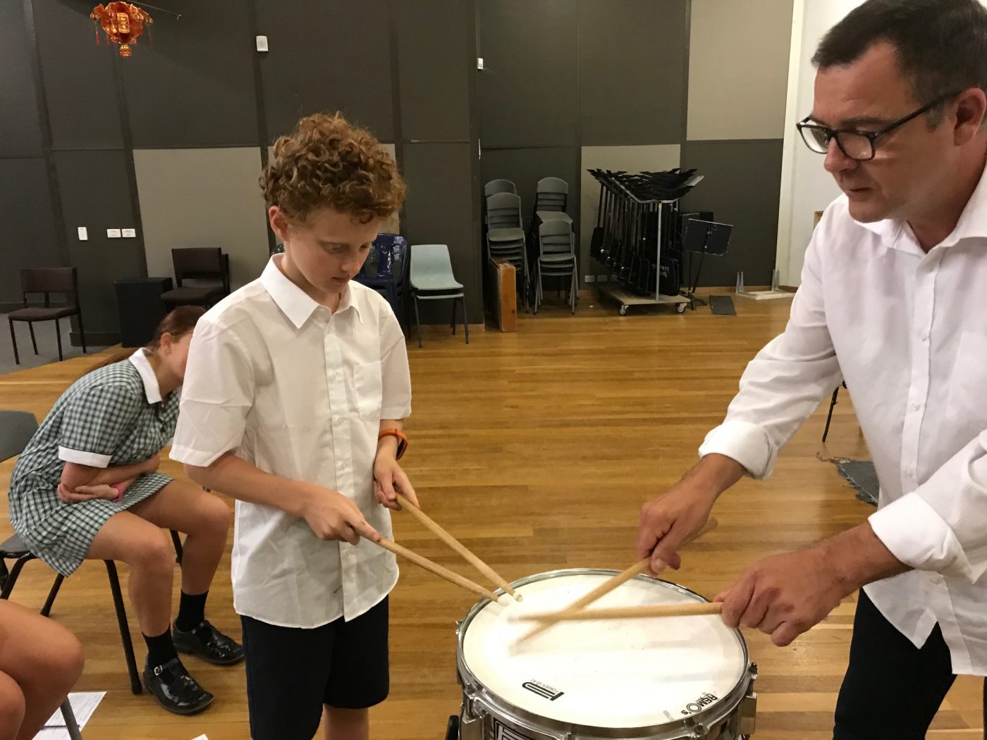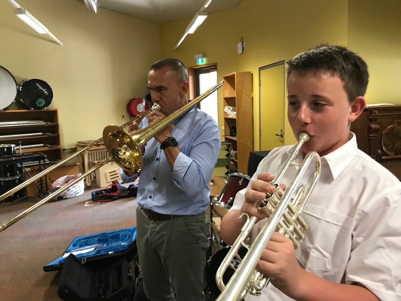 Even college principal, Mr Wayne Chester, came down to see what all the fuss was about… and was quickly handed an instrument to have a go at.